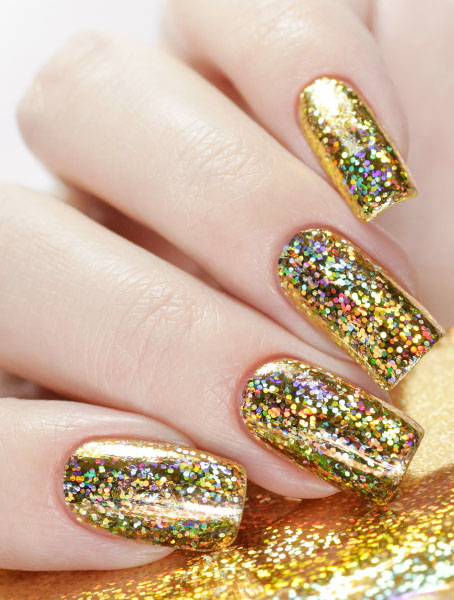 3. Отрывными движениями приклеивать фольгу к поверхности ногтя или его части – цвет перейдет на ноготь. Можно использовать фольгу одного цвета или нескольких разных.