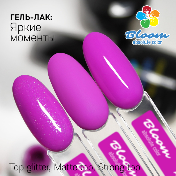 Гель-лаки Bloom меют сливочную консистенцию, самовыравниваются и не затекают при нанесении, удобно наносятся тонким слоем и отлично просыхают.