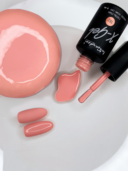 In’Garden X-gel №182 оттенок «Персиковый сорбет» : эмалевое покрытие на основе молочного белого цвета с персиковым пигментом. Универсально для любого типа и оттенка кожи.