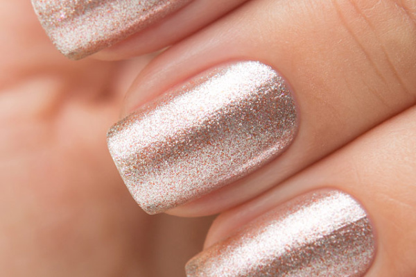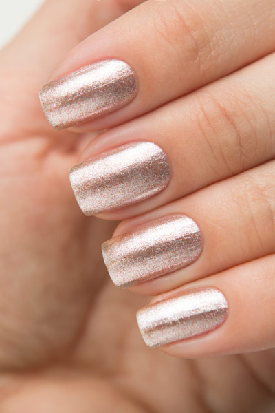 Крупношиммерный металлик, состоящий из частиц серебристо-розового оттенка и более тёмных красновато-малиновых.