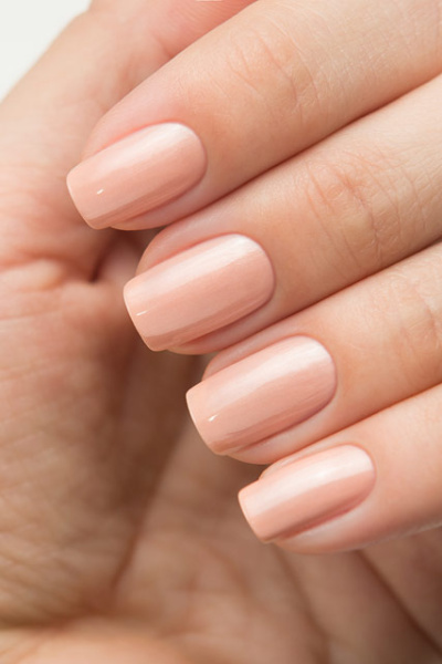 Бежевый нюд с персиковым подтоном. В нём можно заметить вкрапления мелких золотистых частиц и серебряного жемчужного микрошиммера.
