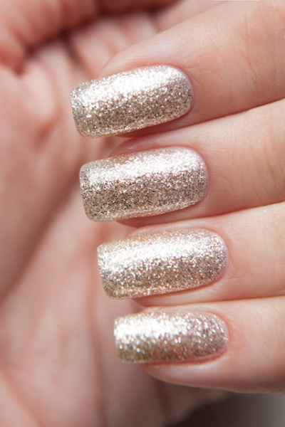 Лак полностью состоит из прозрачной базы и серебряного глиттера двух размеров.