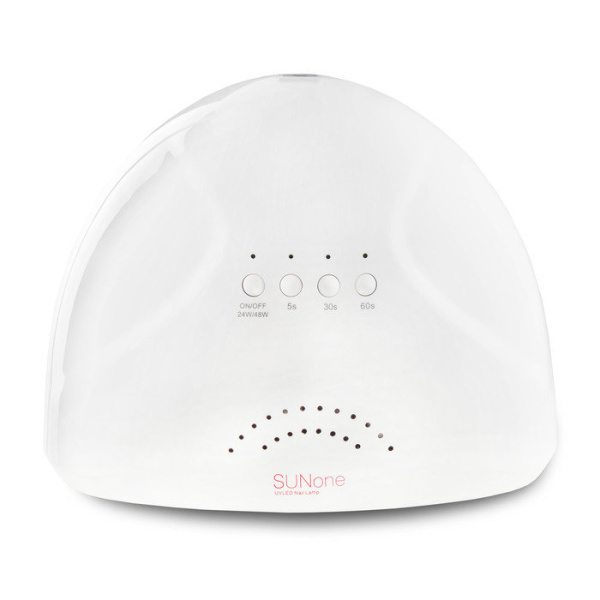 SUN One изготовлена из пластика, дно металлическое, съемное. Поэтому лампу используют как для маникюра, так и для педикюра.