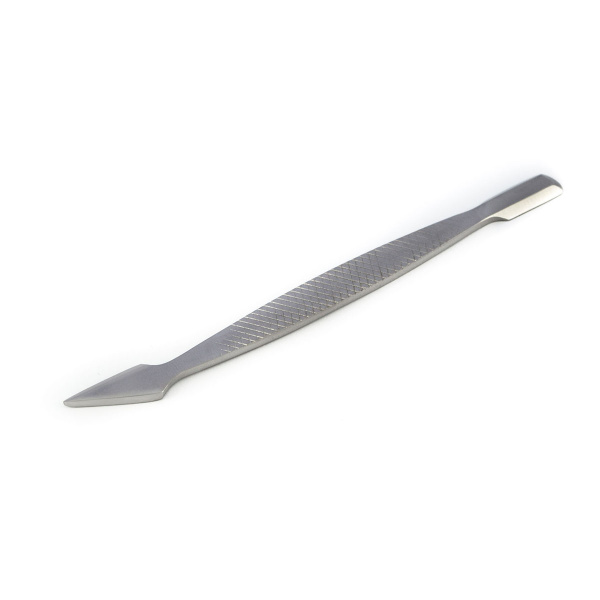Metzger Шабер PU-162 двухсторонний. Имеет две рабочие поверхности - лопатку для отодвигания кутикулы и топорик для удаления птеригия. Инструмент имеет блестящее покрытие с мелкой насечкой.Длина: 121 мм. Инструмент подлежит любому виду дезинфекции: термической или химической. Также допускается обработка инструмента в стерилизаторе.Компания METZGER является первым российским профессиональным поставщиком парикмахерского, маникюрного, педикюрного, пирсингового и косметологического инструмента.Все инструменты изготовлены из высоколегированной нержавеющей инструментальной стали, которая соответствует международному стандарту и прошла строжайший контроль качества.