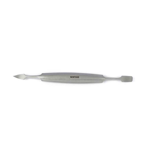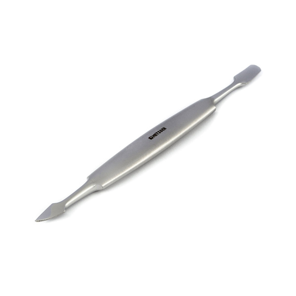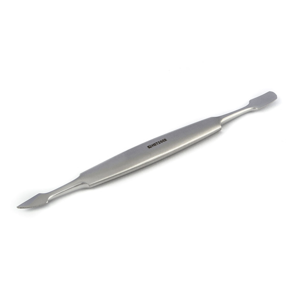 Имеет две рабочие поверхности - лопатку для отодвигания кутикулы и пику для чистки ногтевого плато под любым углом. Инструмент имеет матовое покрытие.