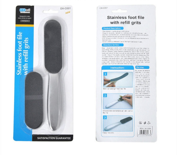 Педикюная пилка со сменными абразивными полосками. В набор входит 10 полосок с разной абразивностью (5 жестких и 5 мягких), с самоклеющимся слоем. Разный абразив полосок позволяет выполнить весь объем педикюных работ по удалению ороговевшей кожи на пятках и пальцах ног. Агрессивный абразивный материал справляется с участками сильно огрубевшей кожи, мелкоабразивные полоски предназначены для подушечек пальцев и бокового края стопы. Пилка выполнена из нержавеющей стали, что исключает процесс ржавения, окисления, чем продлевает срок службы пилки и позволяет обрабатывать ее различными способами.