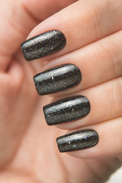 Быстросохнущее верхнее покрытие с мелкими серебристыми блёстками. Ускоряют высыхание лака, продлевают срок носки маникюра и придают ногтям искристое сияние. Есть несколько вариантов использования топов: как быстросохнущее прозрачное верхнее покрытие, или, если вы хотите придать маникюру праздничное сияние, необходимо встряхнуть флакон, тогда блёстки окажутся на кисточке.